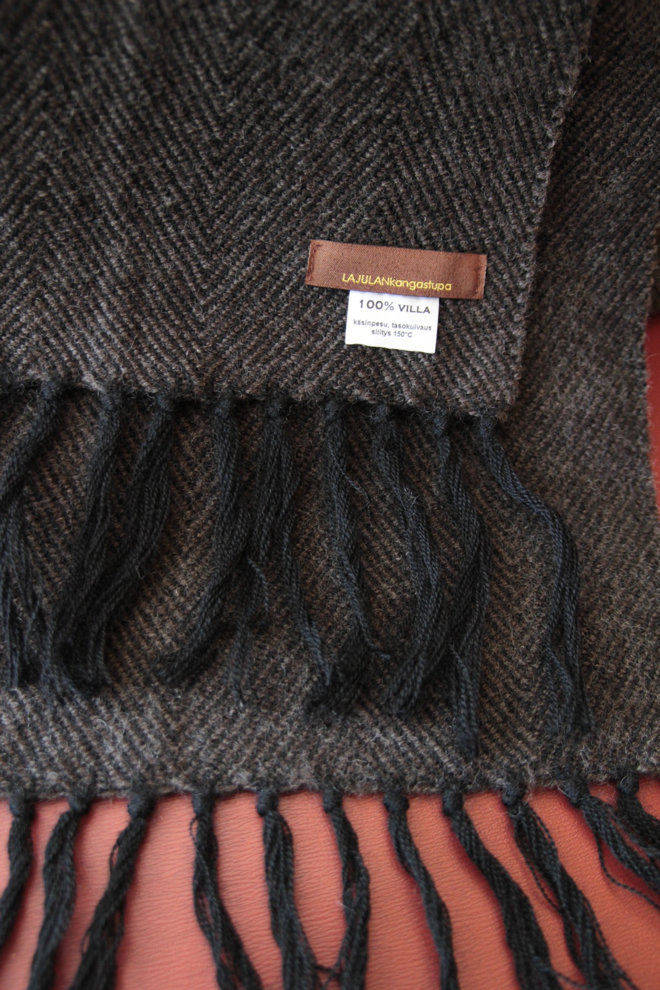 - tuotteen alkuperämaa: kude suomenlampaan villaa, huivi suunniteltu, kudottu ja viimeistelty Suomessa