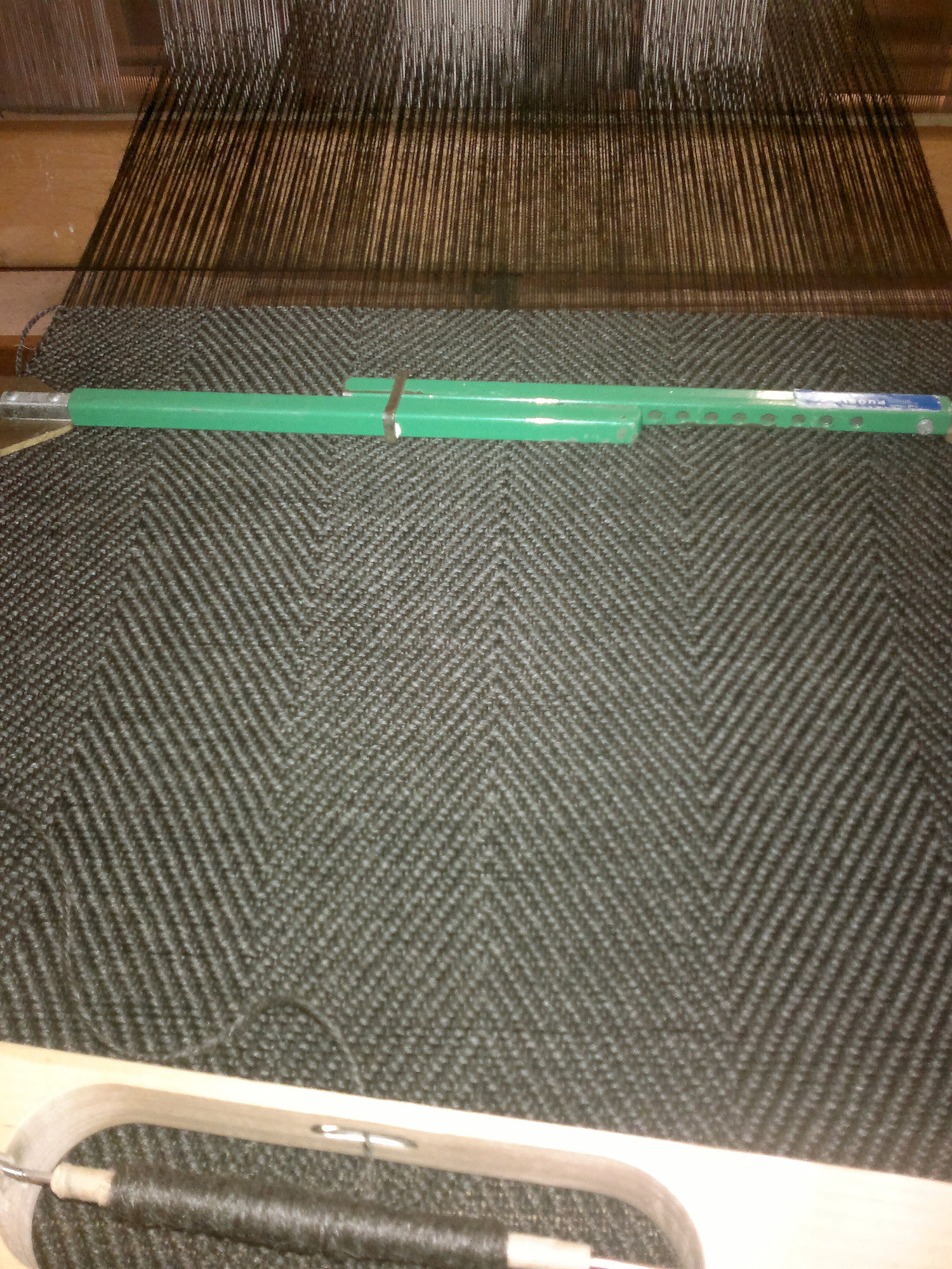 - kankaan rakentaminen: (koko kuuden huivin loimen rakentaminen vei kuusi tuntia, joten) tälle huiville lasken työaikaa yhden tunnin