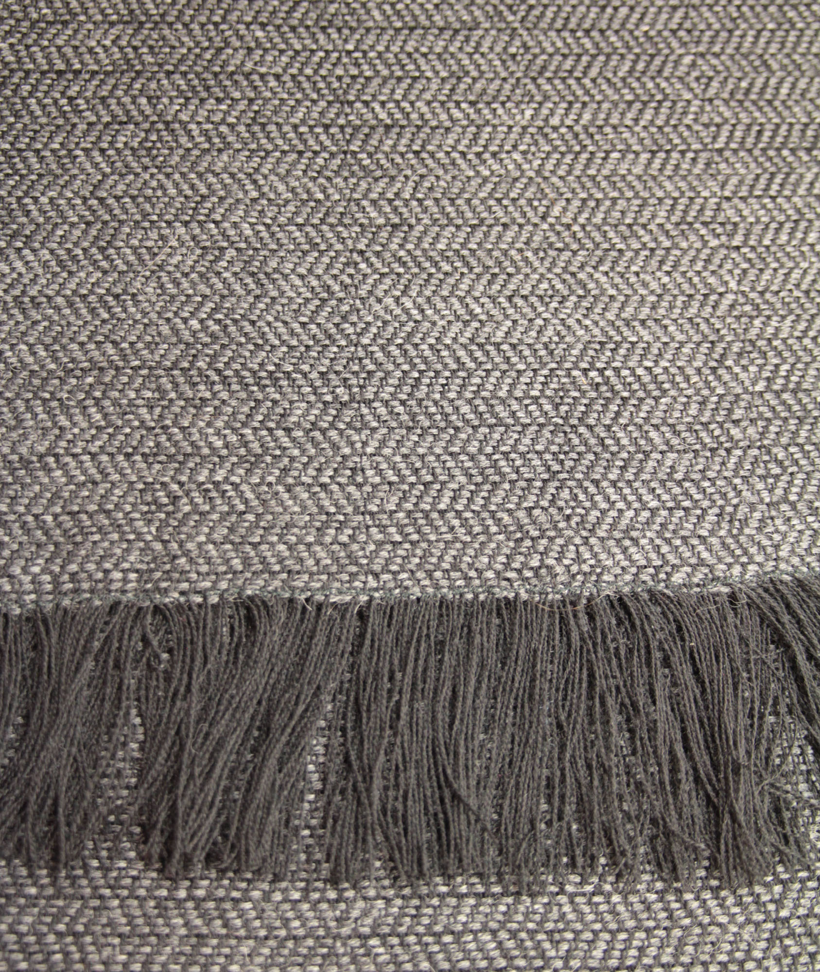 Kudontaohje: Kierrä kuteella reunimmaiset loimilangat, jotta ne sitoutuvat kankaaseen. Kudo umpiviriöllä eli vaihda viriö ennen luhalla kuteen saattamista: näin tiheys pysyy hallitumpana. Kudo huivia 160 cm. Saat hapsut alkusolmuista ja tutkaimista 10 cm molempaan päähän.