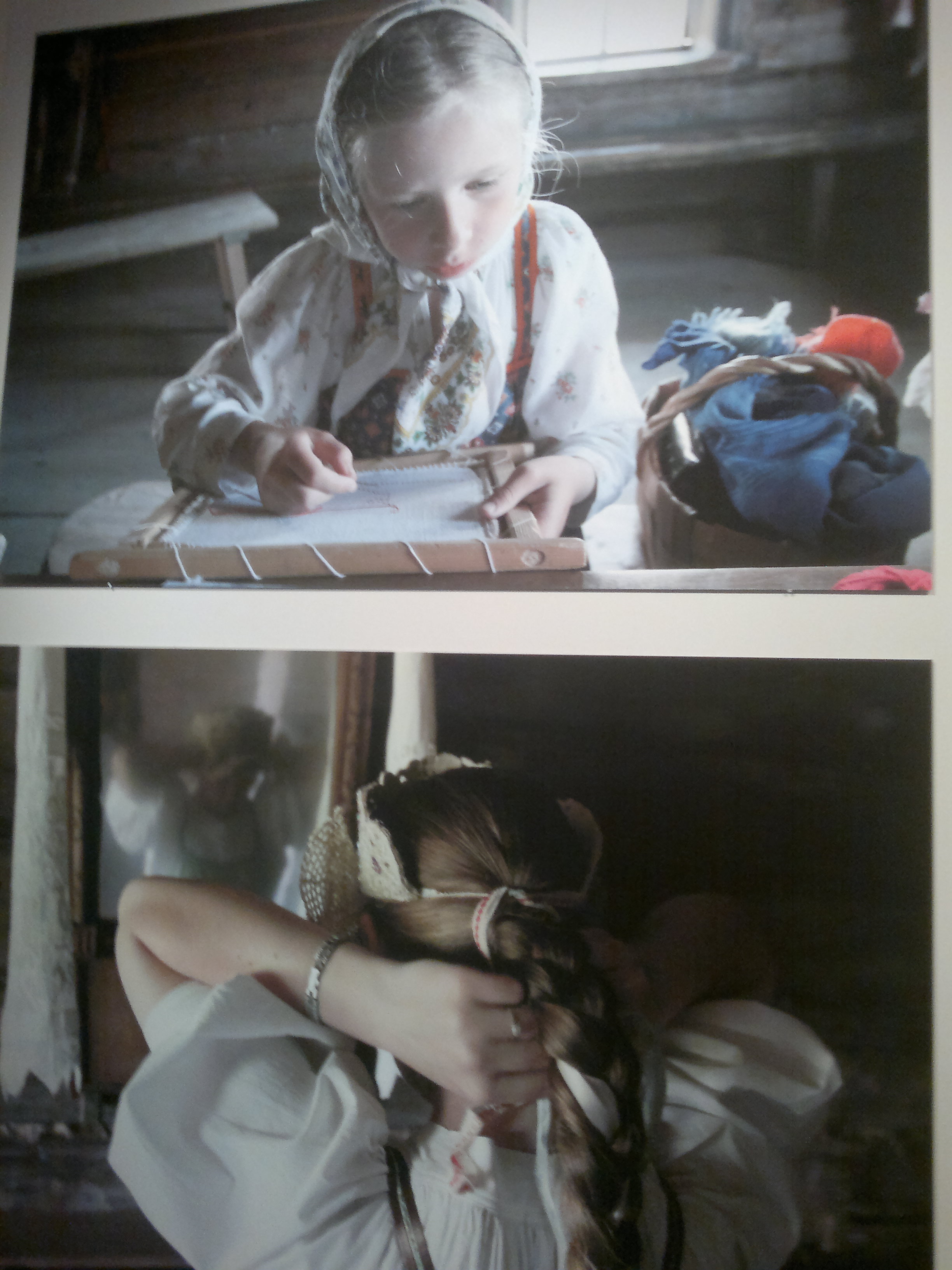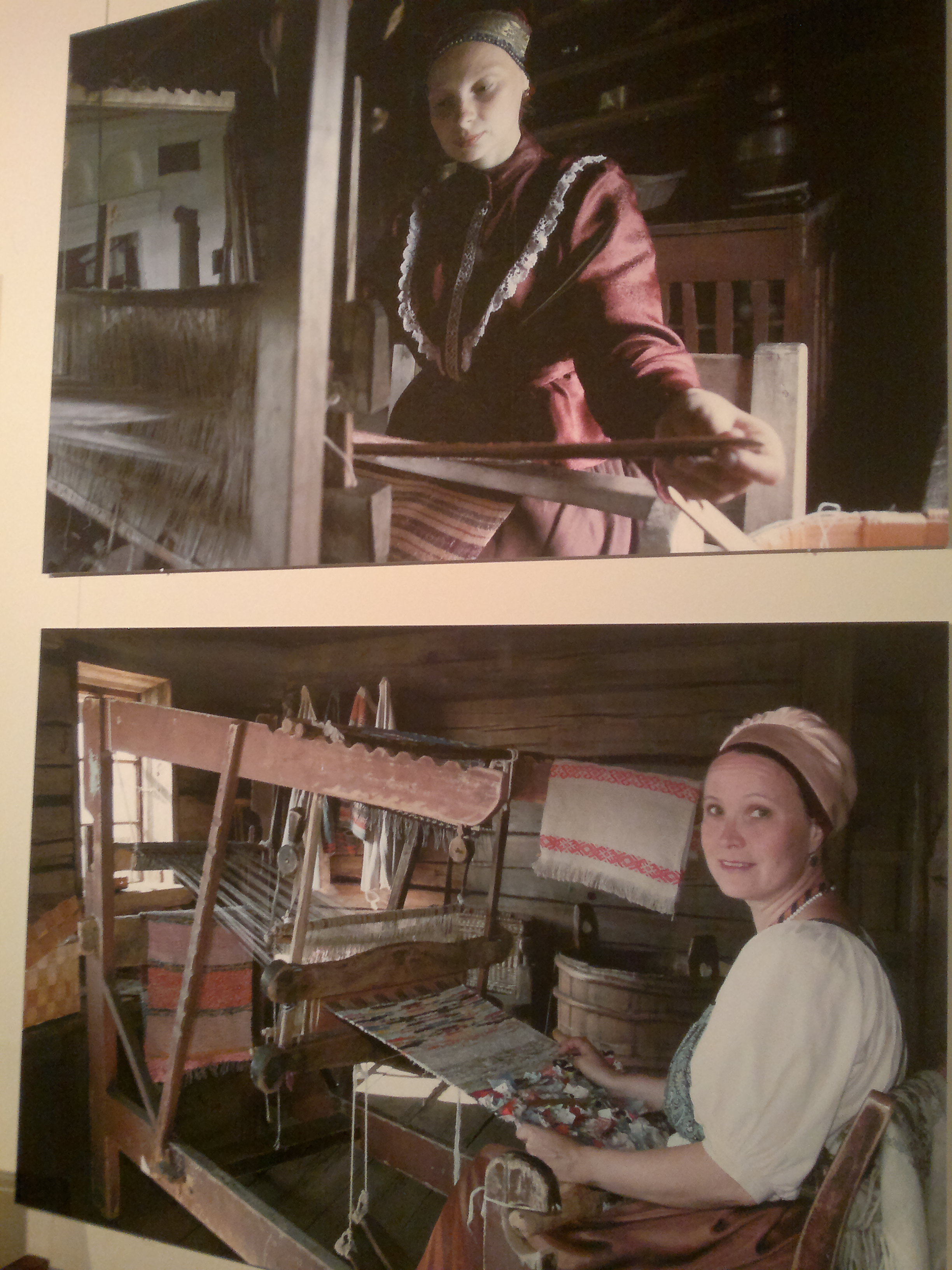 Näyttelyyn oli tuotu kopioita käsitöistä. Kuvia oli käsitöiden tekemisestä: kutomisesta, pirtanauhan valmistamisesta, kirjomisesta, maalaamisesta ja puutöistä, kuin myös tuvan tsaikkahetkestäkin.