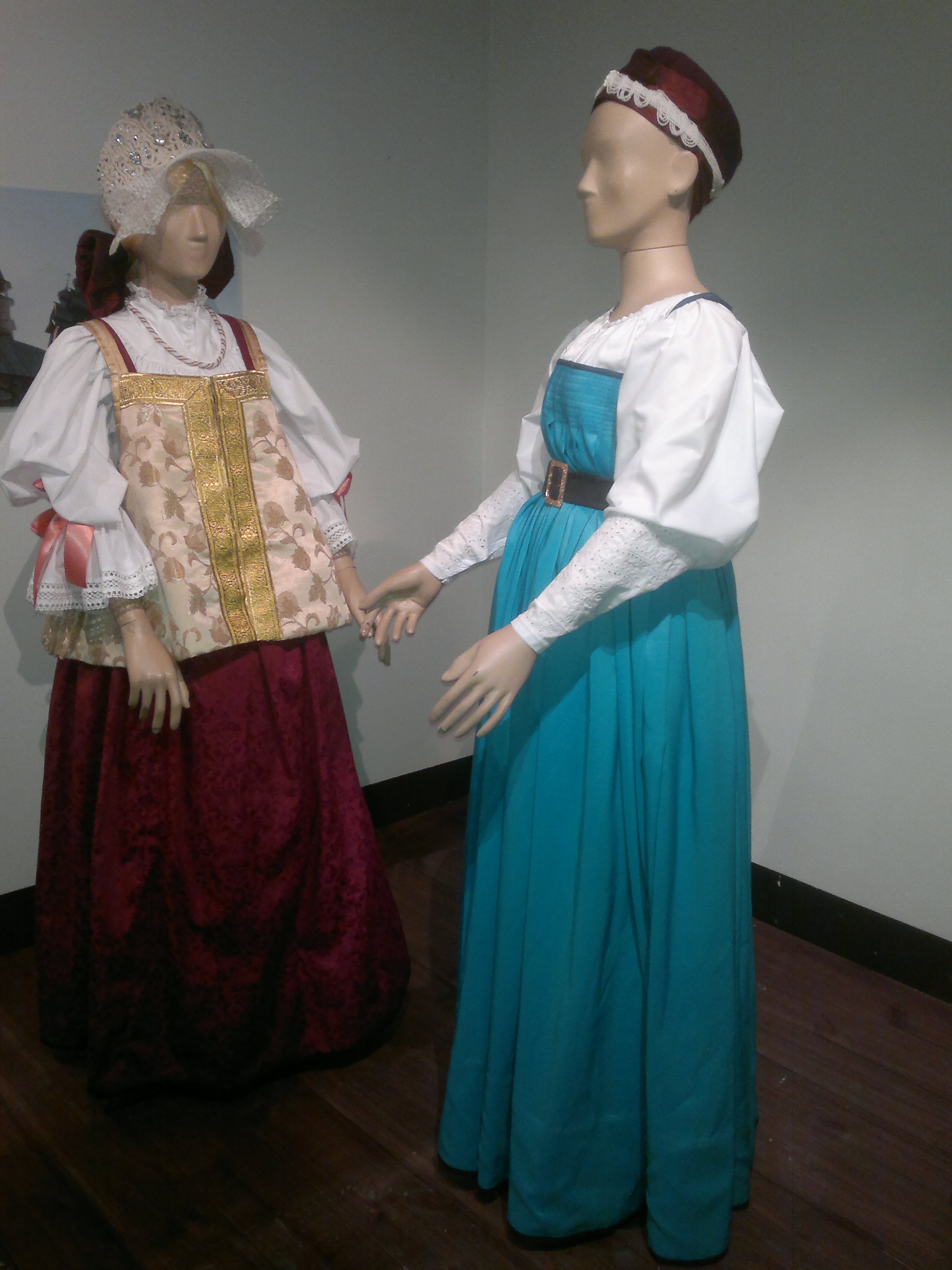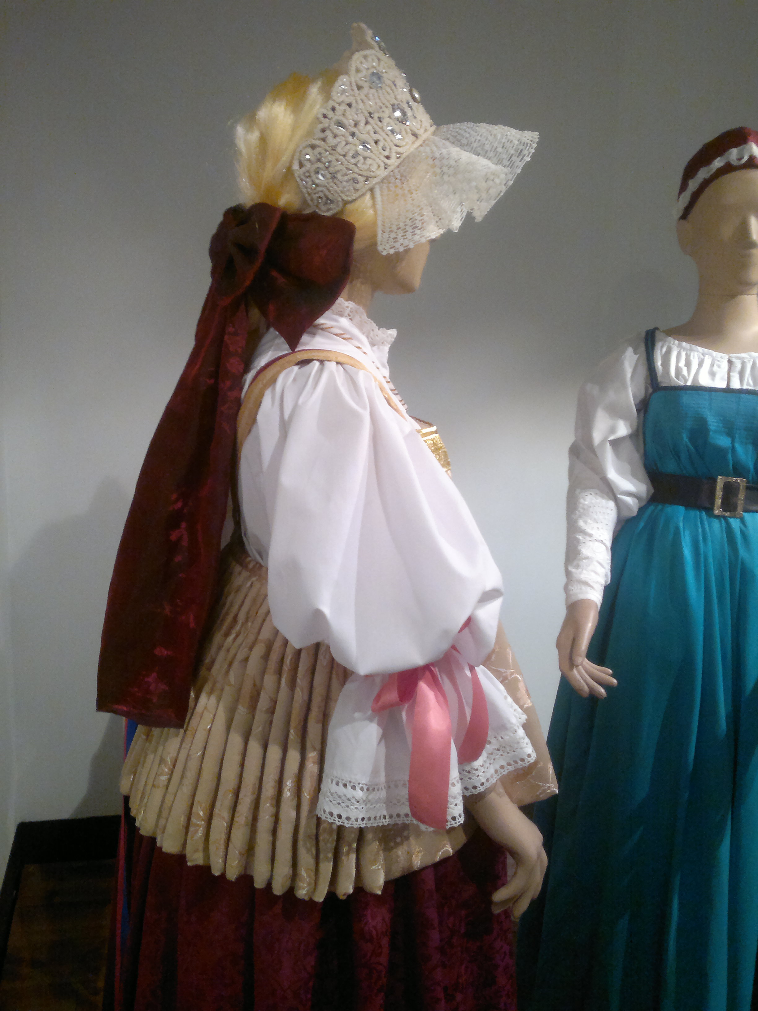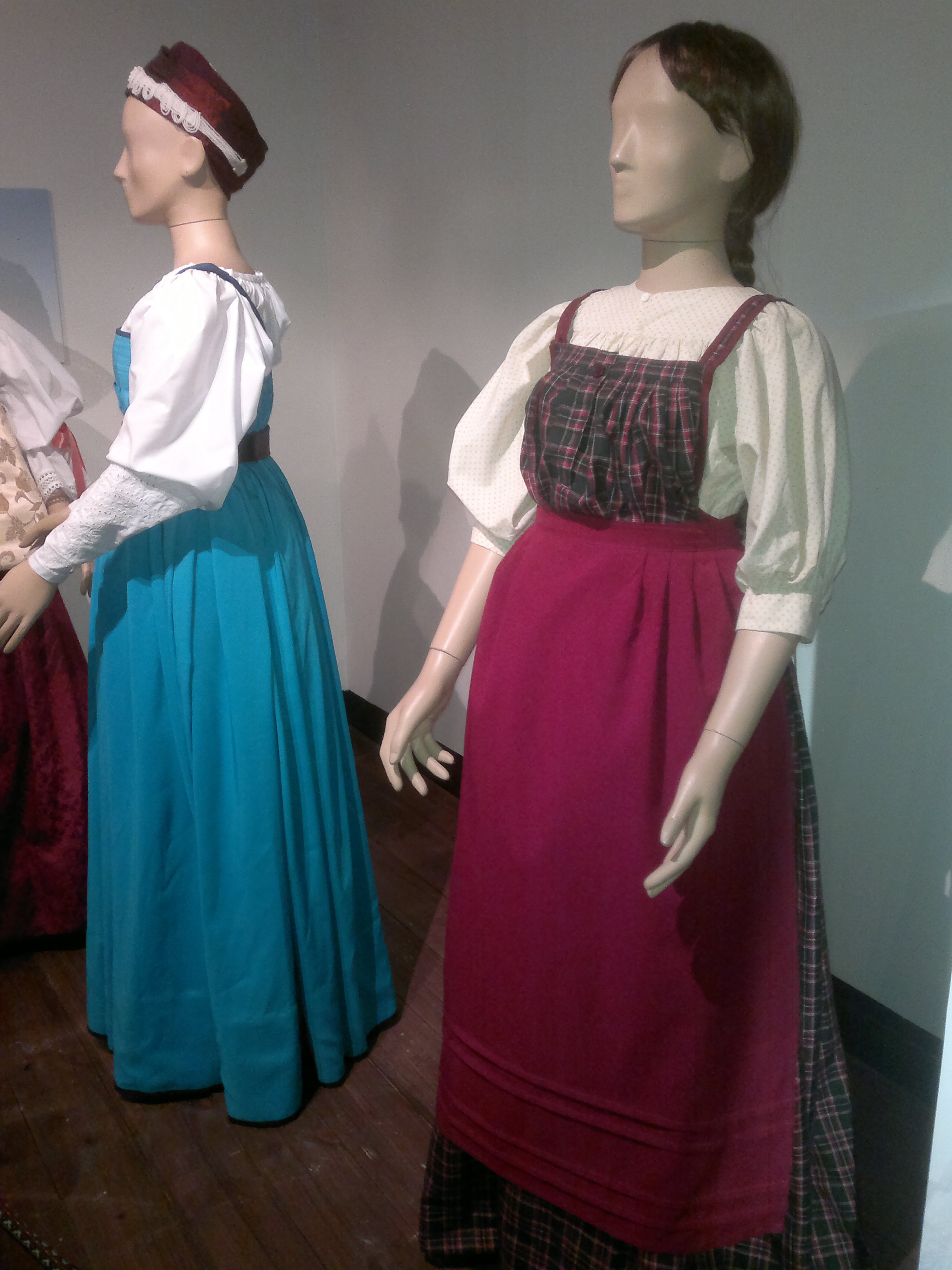 Näyttely alkoi 1800-1900 -lukujen taitteen naisten kansanpuvuilla.