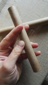 Lankarullan pohja, jolla on paksuutta vajaa 2 cm ja pituutta vähän alle 15 cm.
