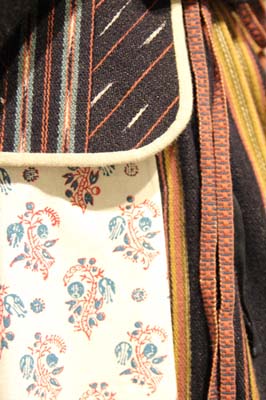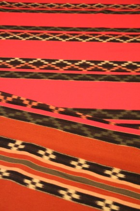 Kansallispuvuissa on flammu- eli täpläkuvioituja kankaita. Flammu on suomenkielinen nimitys langalle, joka on ikat-värjätty. Tekniikka on siis maailmanlaajuinen: vilkaise esimerkiksi Instagramin huikeita ikat-kuvia.