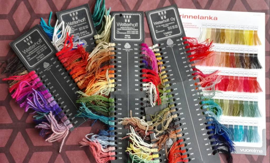 Nykyisin markkinoilla oleva Brage84-karstavilla kattaa värikartallaan näistä sävyistä parikymmentä, mutta värjäysreseptit ovat niillekin tarpeellisia mm. käsin värjättävien flammulankojen valmistamista varten.