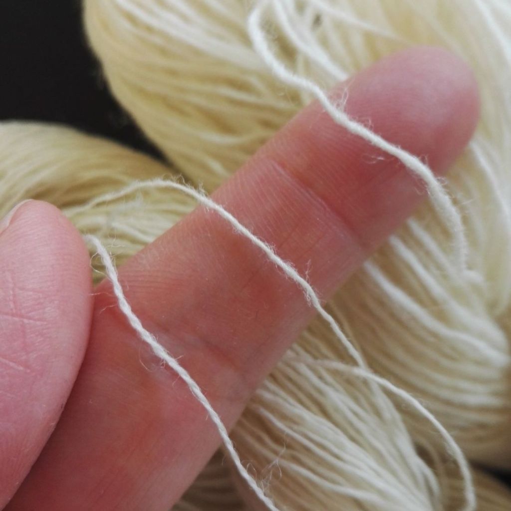 Merseroimaton puuvillalanka näitä vahvuuksia valkaisemattomana (= luonnonvalkoisena), värjättynä