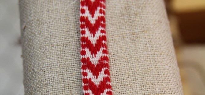 Kudoin karstavillalangoilla Rautjärven kansallispuvun hurstuthamekankaan ja hameen helmaan tulevan pirtanauhan. Yhden hameen tarpeet ovat varastossani - sinulleko?